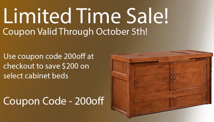 The Night & Day Dark Chocolate Murphy Cube Cabinet Bed is a truly instant guest bed. Convert it from handsome cabinet to comfy bed in less than a minute. When all closed up it just takes 10 square feet of floor space. Easy to convert, easy to use, easy to love.