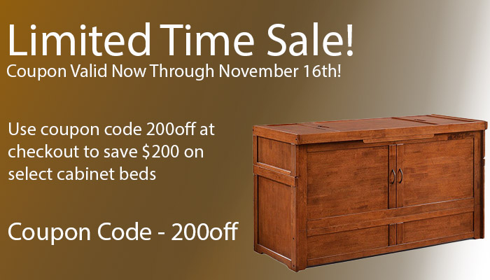 The Night & Day Rustic Brown Murphy Cube Cabinet Bed is a truly instant guest bed. Convert it from handsome cabinet to comfy bed in less than a minute. When all closed up it just takes 10 square feet of floor space. Easy to convert, easy to use, easy to love.