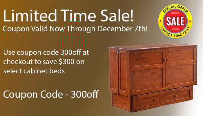 This Murphy Cabinet Bed is an affordable, less-expensive alternative to traditional Murphy Wall Beds and requires no complex installation or fastening to the wall. The dual-purpose space efficient design means this chest bed can easily fit under a window and be moved around your living space to meet your specific needs.