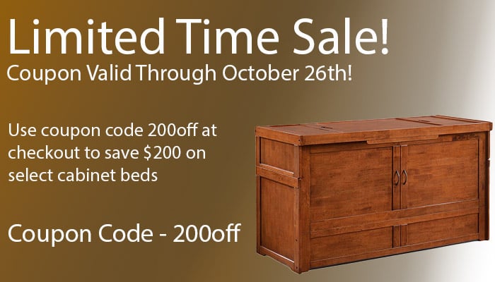 This Murphy Cabinet Bed is an affordable, less-expensive alternative to traditional Murphy Wall Beds and requires no complex installation or fastening to the wall. Its compact size leaves a smaller footprint than larger cabinet beds. The dual-purpose space efficient design means this chest bed can easily fit under a window and be moved around your living space to meet your specific needs.